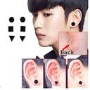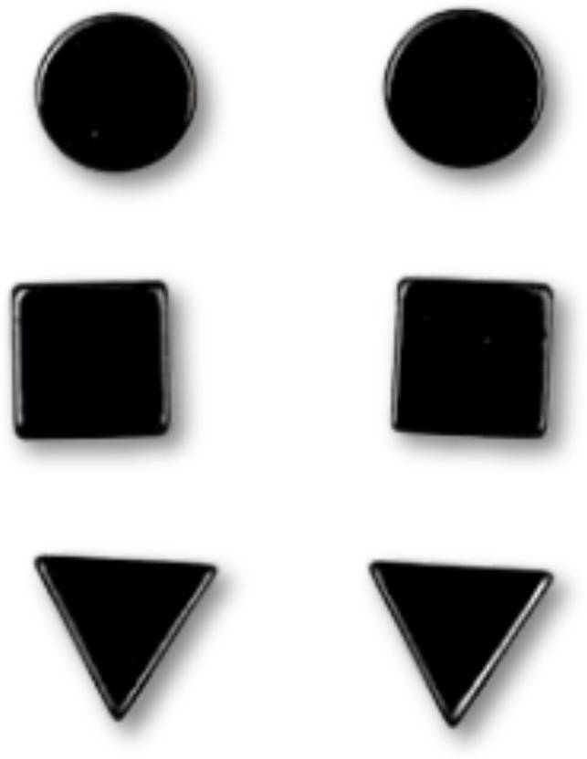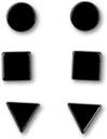 Kauberi Jewels 3 Pair Set of Geometric Black Stud Earrings - Circle, Triangle, Square Shapes Metal Magnetic Earring