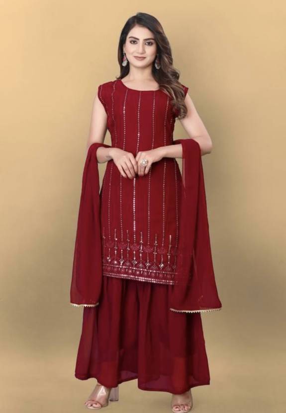 KAVATHIYA Embroidered Kurta, Sharara & Dupatta Set