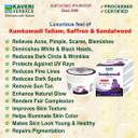 KAVERI HERBALS Kumkumadi Face Cream : is a Rich Natural Ayurvedic ingredients that provides youthful & naturally radiant skin. It helps reduce signs of aging & brightens skin tone. Applied Externally to Treat Boils, Acne, Pimples, Skin Disorders. Restore Color of Skin. Naturally Relaxing, Healing and even Moisturizing for your Skin. Glowing Skin, Reduces Wrinkles (Anti-Aging). Protects from Dryness without Clogging Pores & Skin Irritation. Helps in Collagen Formation & Production of New Skin Cells. Nourishes Skin, Gives a Natural Glow. Brighten Complexion, Reduces Under Eye Circles, Spotless Skin, Anti-Aging, Protection from UV Rays & Pollution. Rich in Vitamin B & Vitamin E. Prevents Sun Damage On Your Skin. Beat the Dark Circle. Restore Skin Luster Tightens Skin. Treats Dark Scars. Controls Oiliness, Reduces the Risk of Bacterial & Microbial Infection. Tackles Blackheads & Whiteheads Soothes Irritated Skin.