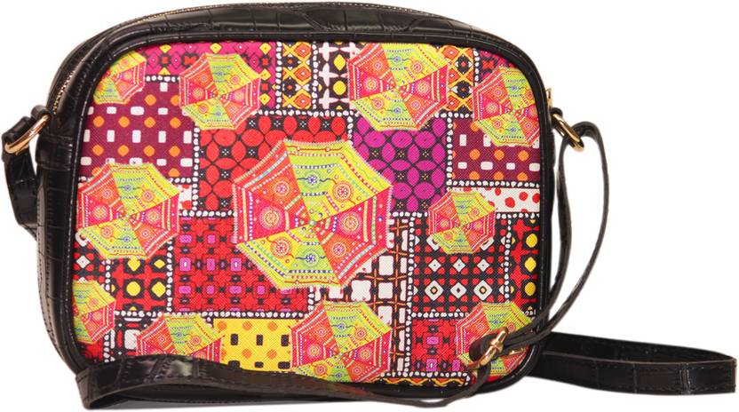 Black Women Sling Bag Colourful Umbrella Rectangular Sling Bag Black Exterior 102-1