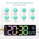 Upgrade your space with this modern Digital Wall Clock featuring a large 16.2-inch high-definition RGB display. It shows time, date, day, temperature (°C/°F), and daylight saving time clearly. The clock includes 5 single-color and 3 multi-color lighting modes, easily customizable via remote control. With 10 brightness levels and both auto/manual settings, it ensures visibility without discomfort. Multifunction alarms support daily, weekend, and weekday options with 12/24-hour formats. USB-powered with a built-in memory battery, it retains settings during power outages, making it perfect for bedrooms, offices, and living rooms.