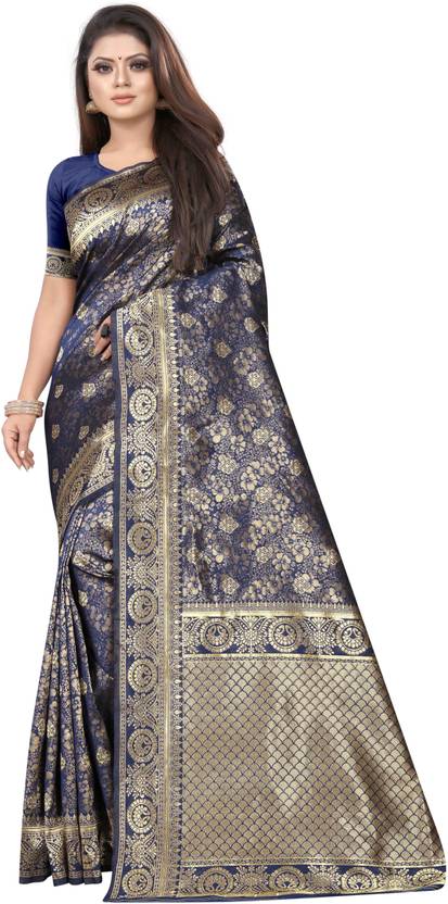 Self Design, Printed, Woven Banarasi Art Silk Saree (Blue)