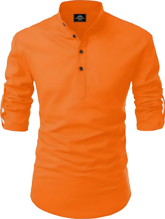Kavyangle Creation Men Solid Straight Kurta (Orange)