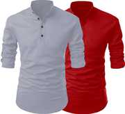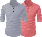 Kavyangle Creation Men Solid Straight Kurta (Blue, Maroon)