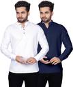 Kavyangle Creation Men Solid Straight Kurta (White, Light Blue)