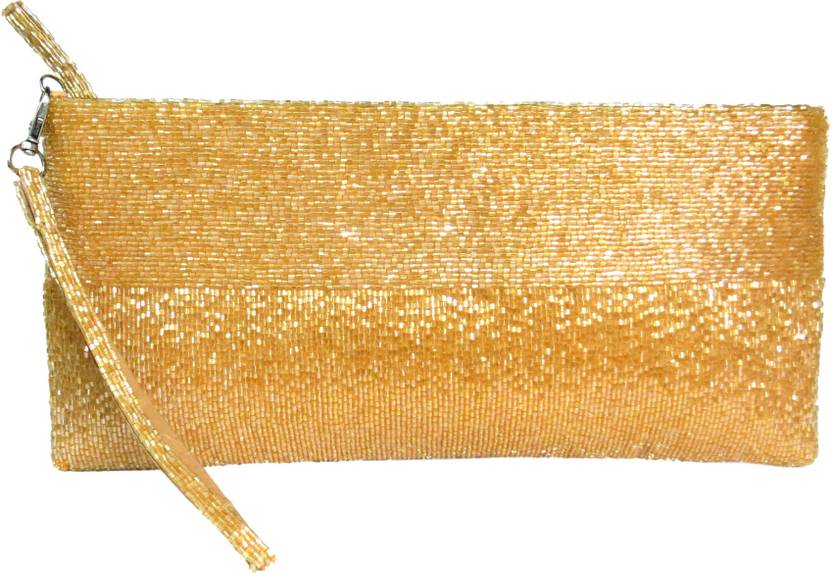 Yellow Gold Pipe Beads Zipper Pouch Handbag