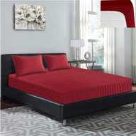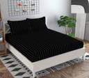 Kawi Satin Queen Fitted (Elastic) 200 TC Striped Bedsheet (Pack of 1, Black)