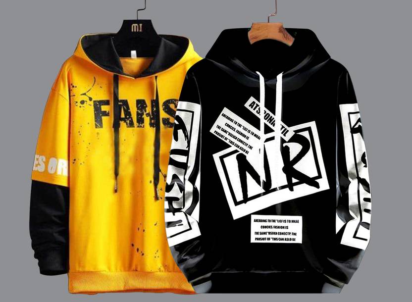 Kay Dee Printed Men Hooded Neck Yellow, Black, White T-Shirt