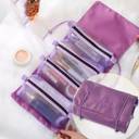 Sufficient size for your makeup and hair brushes (and a curling iron or straightener in the middle), easy to take all your cosmetics, skin care products and toiletries with you when travelling.