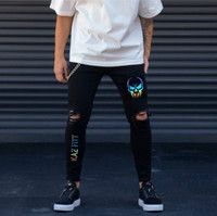 Featuring a printed pattern, these men's jeans offer a contemporary look that adds character to any casual outfit. The bold print introduces a touch of individuality, making them a standout piece in your wardrobe. With knee-slit distressed details, these jeans provide a modern, edgy twist on classic denim, blending style with functionality. Thanks to the unique design, these jeans allow you to make a statement with ease.