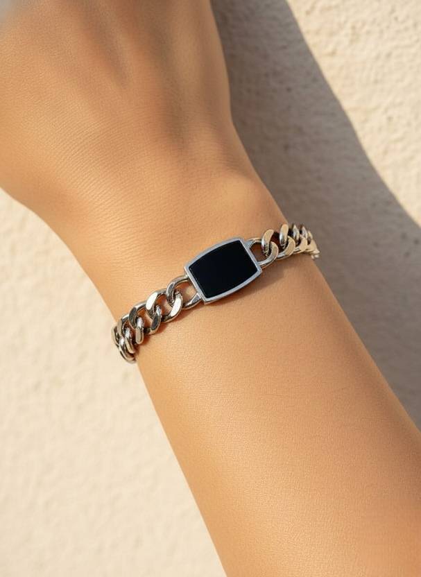 Upgrade your style game with this trendy chain bracelet for boys from Kazare" Crafted with premium quality alloy, this bracelet perfectly blends modern design with bold masculine charm. The sleek silver-tone chain and black centerpiece plate give it a classy and confident look, making it ideal for daily wear or special occasions. This fashionable boys bracelet adds a touch of attitude and elegance to your outfit. Pair it with your casual or formal wear and let your wrist do the talking!