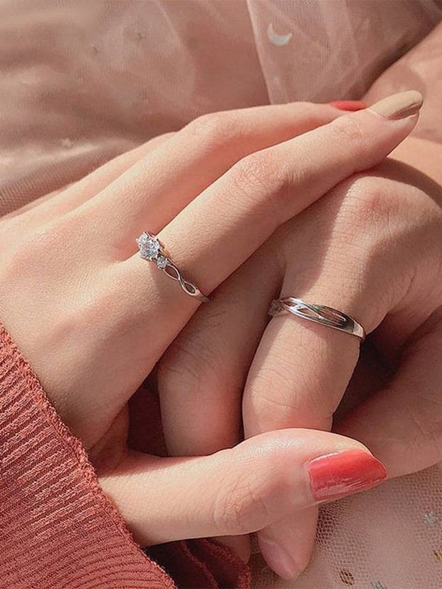 kazare Couple ring For Girls& Women |Party Wear Alloy Rhodium Plated Ring Set