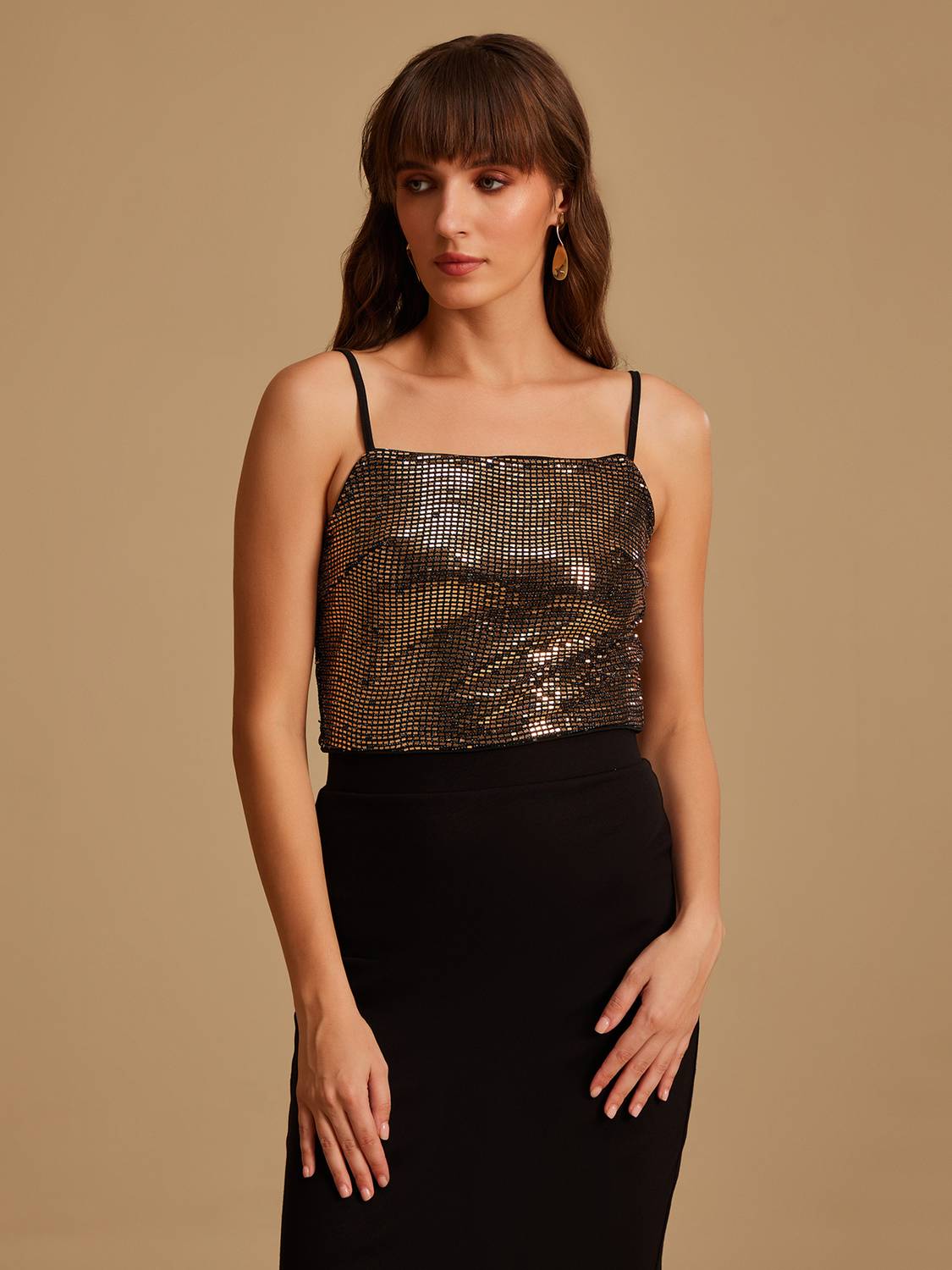 Strapless Jumpsuit With Embellished Overlay. Pair It With Flats And A Sling Bag For A Day Party With Friends.