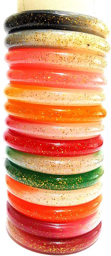 Baby Kids Plastic Bangles Set, Multicolour with Glitter filled Laminated Smooth Surface