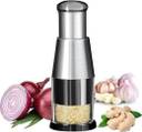 The Hand Press Garlic Chopper is a convenient and efficient kitchen tool designed to make chopping garlic, ginger, and other small vegetables quick and effortless. With its ergonomic press-down design, it allows you to mince ingredients evenly without the need for knives or cutting boards. The sharp stainless steel blades ensure precise chopping, while the durable food-grade container keeps your hands odor-free and your kitchen mess-free. Compact, lightweight, and easy to clean, this garlic chopper is a must-have for every home cook.