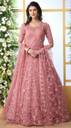 Embroidered Net Semi Stitched Straight Gown (Pink)