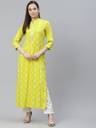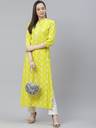 kbtrade Women Printed Viscose Rayon Straight Kurta (Yellow)