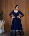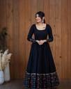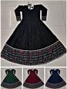 This exquisite gown features a flowing Rayon fabric, classic round neck, and long sleeves, providing a perfect blend of traditional charm and modern sophistication.