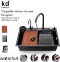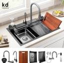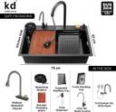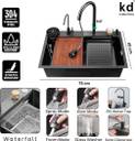 KD INDUSTRIES MULTI-FUNCTIONAL ALL IN ONE 304 GRADE 30X18 WATERFALL KITCHEN SINK Vessel Sink (NANO BALCK)