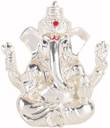 KDH Hindu God Silver Coated Ganesh|Ganpati|Lord Ganesha Idol with Resing Filing Inside|Size- 3.25"x3.75"|Statue|Showpiece for Home Decor and Office|Gifting Decorative Showpiece - 9.5 cm (Polyresin, Silver)