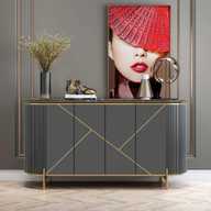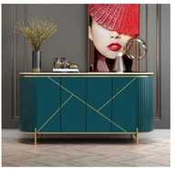 KDINTERIORS 1500mm Modern Grey Sideboard Buffet Marino Laminate Top 4 Doors 2 Shelves Engineered Wood Free Standing Sideboard (Finish Color - Grey & Gold, Door Type- Hinged, DIY(Do-It-Yourself))