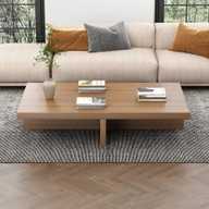 NG Decor Farmhouse Wood Coffee Table Rectangle-shaped in Natural Rustic Engineered Wood Coffee Table (Finish Color - Natural, Pre-assembled)