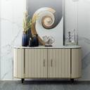 Kd Kohinoor Décor Texturine Modern Faux Marble 2-Door Sideboard Cabinet with Metal Handles Engineered Wood Free Standing Sideboard (Finish Color - Beige & Gold, Door Type- Hinged, DIY(Do-It-Yourself))