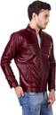 Men Solid Leather Jacket