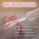2 AA Battery operated electric trimmer , can trim and polish nails and toes automatically and quickly. Can choose high low speed and clockwise reverse spin direction . Single hand operated . You won't have to worry about trim the right hand nails by left hand . There is a built in LED front light and quiet motor, you can trim their nails while they’re sleeping . You won’t have to be afraid of trimming for baby . You will enjoy manicure for baby. Electric baby nail file is very gentle with baby's nails, safely and quickly trim and polish little toenails and fingernails when it works in a electric grinding way instead of traditional cutting way, won't damage cuticles or soft nail beds