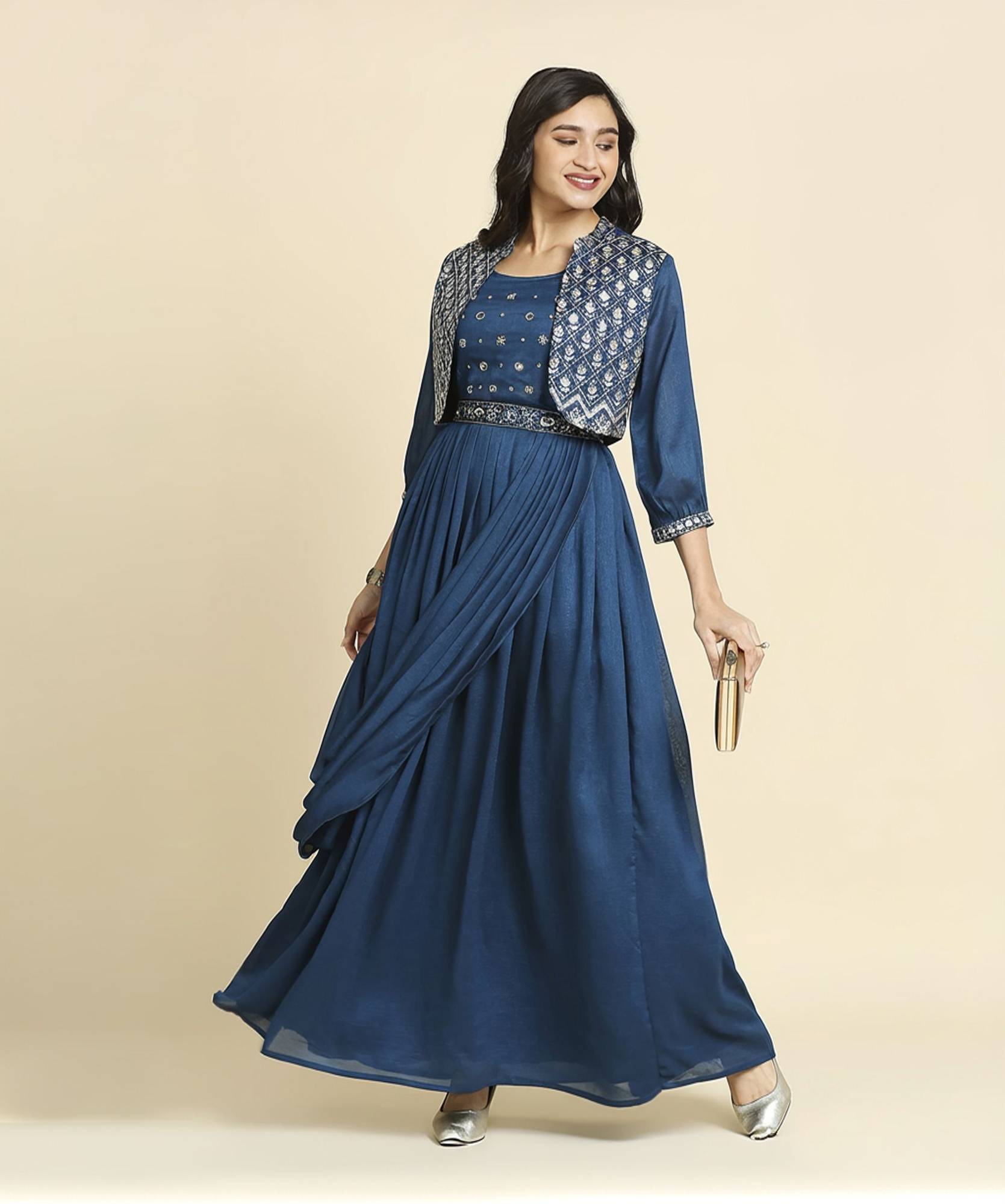 Flared Hemline Gown, Floral Thread Embroidery Gown, Sequence Embroidered Gown, Anarkali Style Gown Set, Gergette Fabric Gown Set, Micro Inner