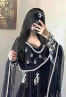 Featuring an Anarkali design, ankle-length cut, and accompanying dupatta, this gown set exudes grace and poise. In addition, its V-neck and full sleeves enhance its traditional yet contemporary appeal, offering an ideal blend of modesty and style. Furthermore, this gown’s ankle-length design offers a flattering silhouette, making you feel confident wherever you go. Plus, with the included dupatta, you have the option to style it in different ways, adding versatility to your wardrobe.
