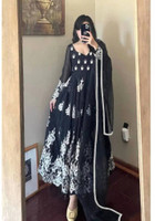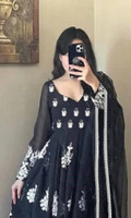 Crafted from excellent georgette material, this gown ensures a rich, comfortable wearing experience. Moreover, its georgette fabric's lightweight and flowy texture drapes beautifully, flattering all body types and adding an ethereal touch to your ensemble.