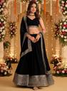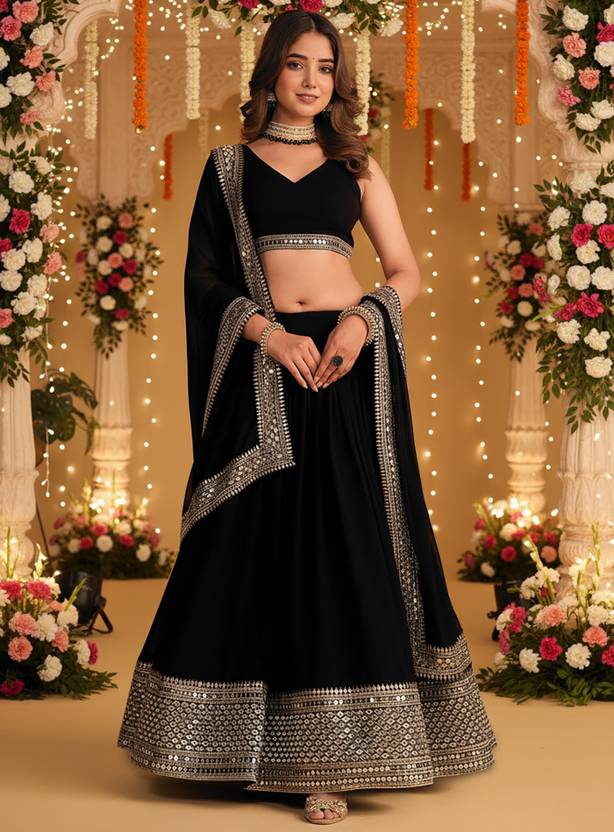 Lehenga(Semi-Stitched) waist:- Upto 40 (In)" | Height:- 43 (In)., Blouse(Unstitched) Bust:- Upto 44 (In)" || Dupatta Length: 2.25 (mtr)., Georgette Fabric Lehenga Set, Intricate Sequins Embroidered Lehenga Choli Set