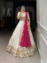 Kedar Fab Embroidered Semi Stitched Lehenga Choli (White, Red)