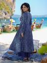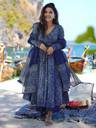 Turn heads with this stunning navy blue ethnic set crafted from soft, breathable Rayon fabric. The outfit features a fit-and-flare Anarkali kurta with a deep V-neckline and full sleeves, perfect for both comfort and style. The kurta is beautifully adorned with traditional block-style geometric and floral prints, giving it a fusion of contemporary and ethnic appeal.It comes paired with a printed palazzo and a matching dupatta featuring delicate patterns in contrast white, making it an ideal pick for casual outings, vacations, or festive gatherings. Lightweight yet stylish ā this piece is a wardrobe essential for modern women.Anarkali Kurta, Rayon Kurti, Printed Suit Set, Flared Kurta Set, Ethnic Wear, Casual Kurti Set, Dupatta Set, Navy Blue Suit, Women's Dress, Block Print Suit