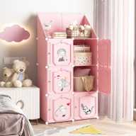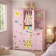 Keekos Plastic Collapsible Wardrobe 12-Door Shelves Pink Plastic Collapsible Wardrobe PC Collapsible Wardrobe (Finish Color - Light Pink White, DIY(Do-It-Yourself))