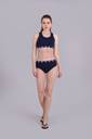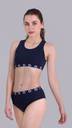 Two-Piece Contrast Border Breathable Swim Bikini Set Printed Women Bikini Dark Blue Swimsuit