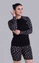 Keepfit Printed swim dress has a round neck and full sleeves, which protects from the sun . still look stylish with our swimming suit, made with soft four-way stretchable , breathable fabric