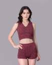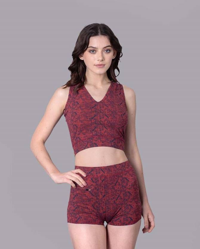 Keepfit V Neck Sleeveless Maroon and Black Printed Swim Set for women & Girls Printed Women Swimsuit