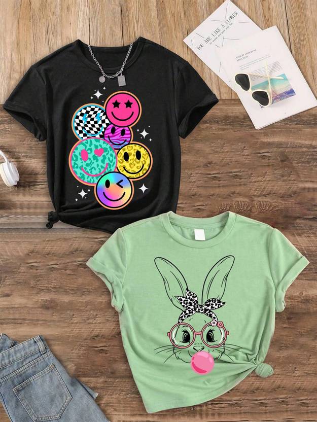 KEESOR Baby Girls Printed Cotton Blend Regular T Shirt (Multicolor, Pack of 2)