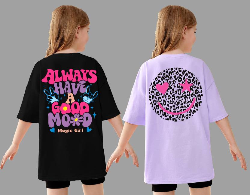 KEESOR Girls Printed Cotton Blend Oversized T Shirt (Multicolor, Pack of 2)