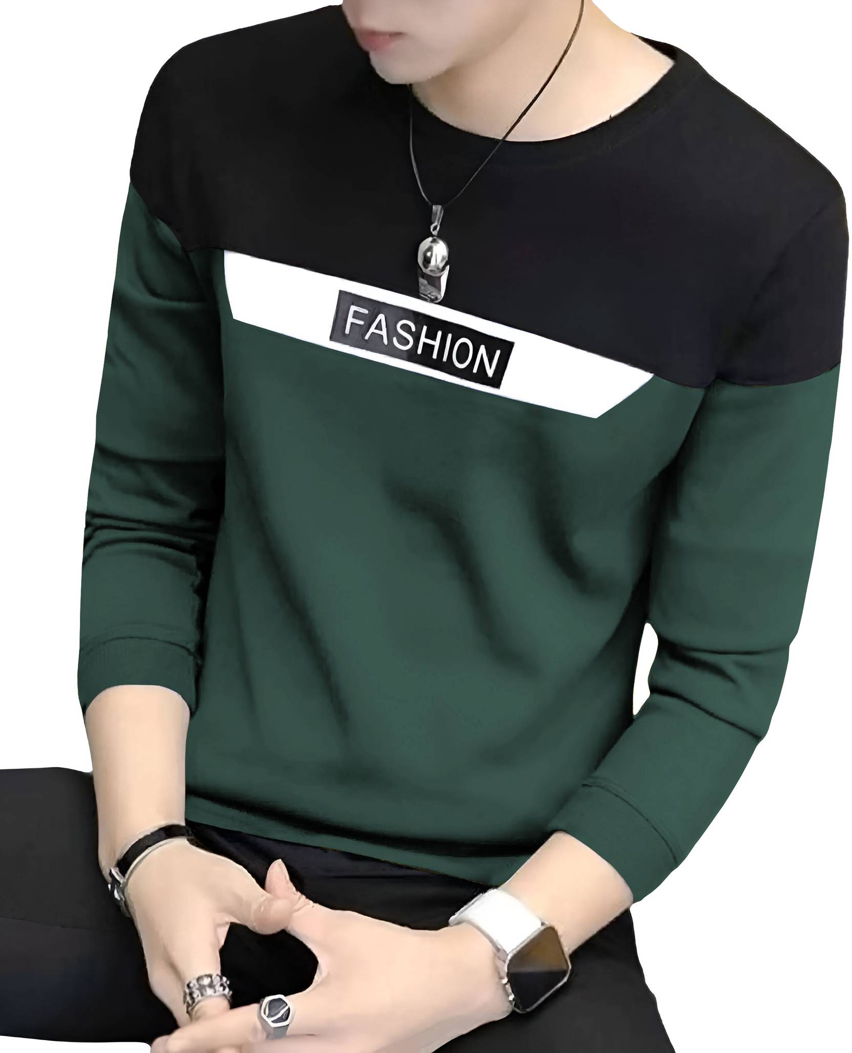 Men Printed Round Neck Cotton Blend Green T-Shirt