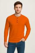 KEESOR Solid Men Mandarin Collar Orange T-Shirt