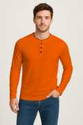 Men Solid Mandarin Collar Cotton Blend Orange T-Shirt
