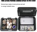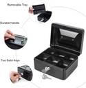 ? Key lock boxes has double layers, the upper removable one with 5 compartments trays for cash,coins,and keys.The bottom one of the money box is designed for checks, receipts and valuables.