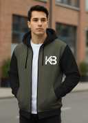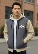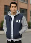 Stay warm and stylish with this trendy colorblocked hoodie featuring a bold KB logo on the chest. Designed with a front zip closure and a hooded neck with adjustable drawstrings, this hoodie ensures both comfort and fashion. The soft cotton blend fabric provides warmth and breathability, making it perfect for daily wear, outings, or layering in winter. Pair it with jeans, joggers, or trousers for a complete casual look.