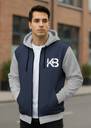 Stay warm and stylish with this trendy colorblocked hoodie featuring a bold KB logo on the chest. Designed with a front zip closure and a hooded neck with adjustable drawstrings, this hoodie ensures both comfort and fashion. The soft cotton blend fabric provides warmth and breathability, making it perfect for daily wear, outings, or layering in winter. Pair it with jeans, joggers, or trousers for a complete casual look.