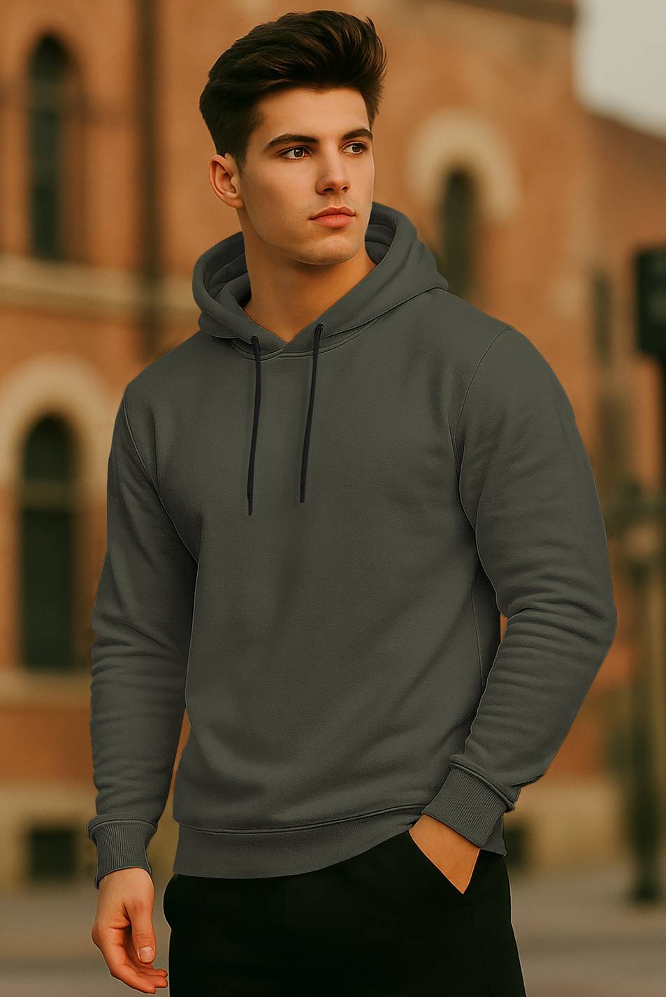 KELONBRO Men Full Sleeve Solid Hooded Sweatshirt
