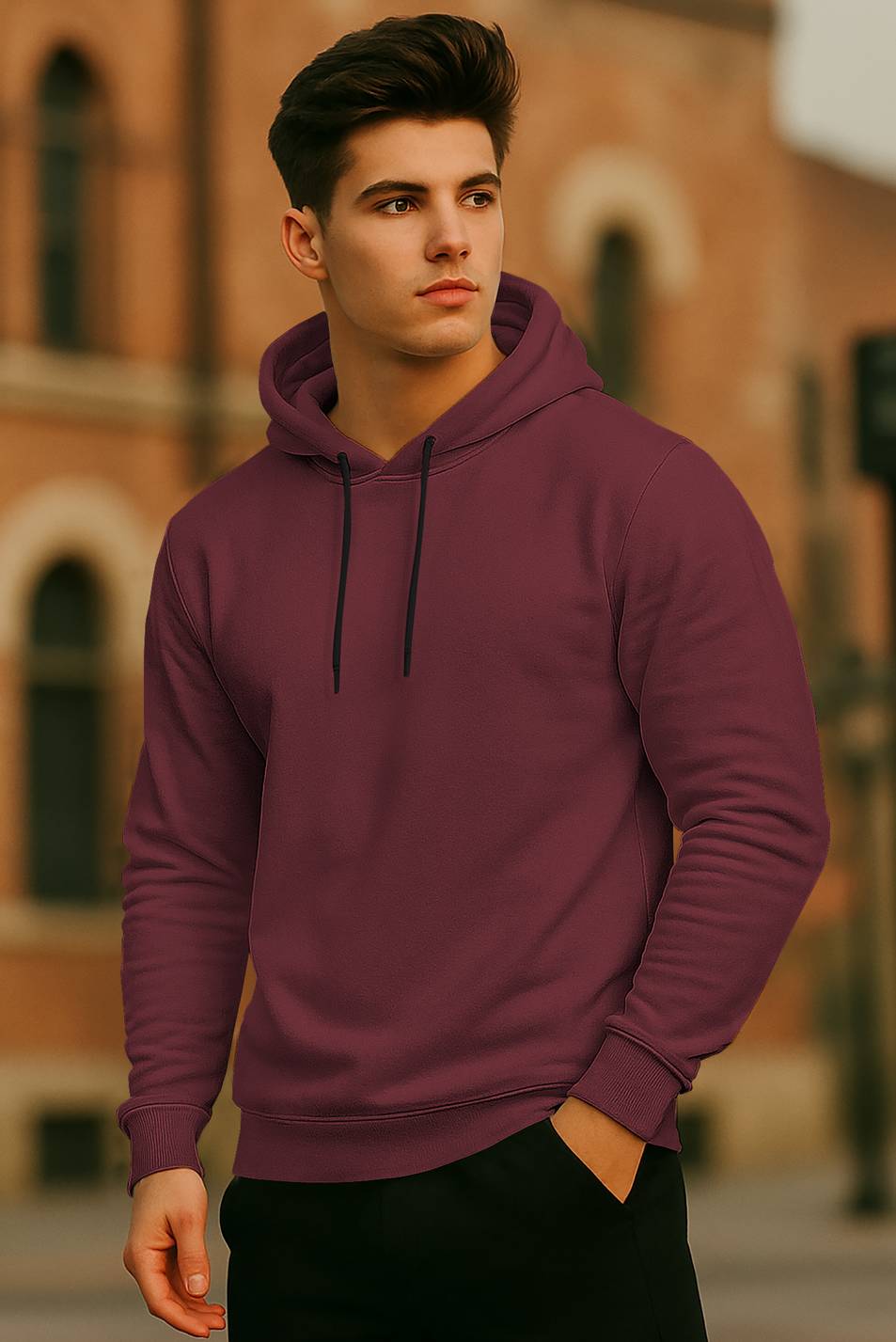 KELONBRO Men Full Sleeve Solid Hooded Sweatshirt