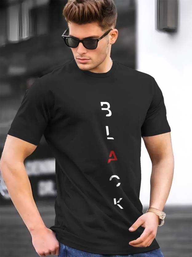 Men Printed Round Neck Cotton Blend Black T-Shirt